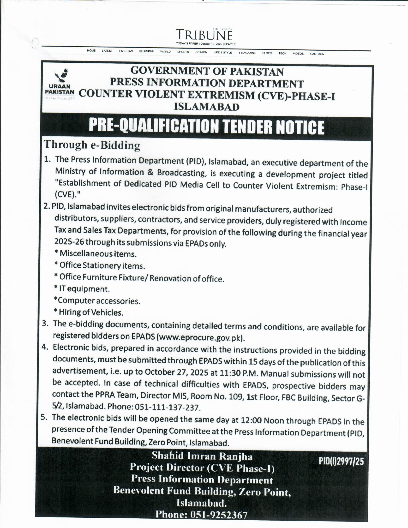 Tender Notice: Public Pulse Survey & Need Assessment – April 2025 Guidelines and Procedures of Advertisement Policy, 2024 Expression of Interest Details of Newspapers those IBAN not updated in AGPR Establishment of Media Facilitation Desk Certificate of Clearance (Print & Electronic Media Payments) Invitation for Registration of Digital Advertisements Provision of documents to update CDA’s vendor number record for payments to newspaper and T.V channel PRINT MEDIA 04.11.2025 Daily Electronic Media Report Payments made to Print Media for the Month of June 2025. Online Advertisement Payment List of Print Media (23.01.2024) Common Service Manual -Vol I Tender Notice Auction Report of the Technical Evaluation Committee Implementation of Disability Quota